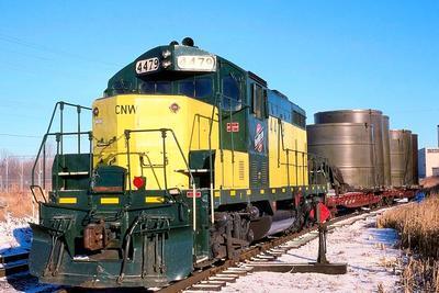 Chicago & North Western Railroad GP7 puzzle, based on an original photo by Greg Mross (photo copyright Greg Mross -- used with permission). Photographed at Cudahy, Wisconsin, January, 1991.