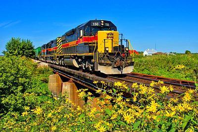 Iowa Interstate Railroad SD38-2 puzzle, based on an original photo by Erik Rasmussen (photo copyright Erik Rasmussen -- used with permission). Photographed at Annawan, Illinois, September 11, 2018.