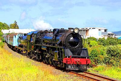 Mainline Steam Heritage Trust 4-8-2 puzzle, based on an original photo by John Russell (photo copyright John Russell -- used with permission). Photographed at Helensville, New Zealand, March 25, 2012.