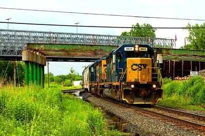 CSX Transportation (CSXT) SD40-2 puzzle, based on an original photo by Joe Hance (photo copyright Joe Hance -- used with permission). Photographed at Watertown, New York, July 6, 2019.