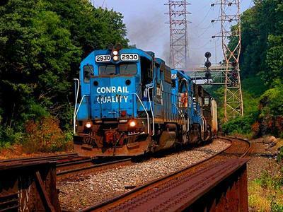 Norfolk Southern GP38 puzzle, based on an original photo by Robert Palmer (photo copyright Robert Palmer -- used with permission). Photographed at Philadelphia, Pennsylvania, June 26, 2003.