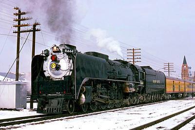 Union Pacific 4-8-4 puzzle, based on an original photo by Bob Krone (photo copyright Bob Krone -- used with permission). Photographed at Cheyenne, Wyoming, February 15, 1975.