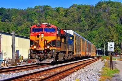 Kansas City Southern Railway ES44AC puzzle, based on an original photo by Bill Bores (photo copyright Bill Bores -- used with permission). Photographed at West Newton, Pennsylvania, September 20, 2016.