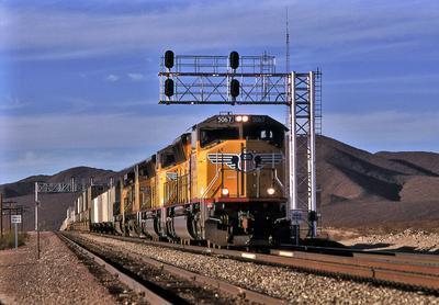 Union Pacific SD70M puzzle, based on an original photo by Joe Blackwell (photo copyright Joe Blackwell -- used with permission). Photographed at Ash Hill, California, January, 2006.