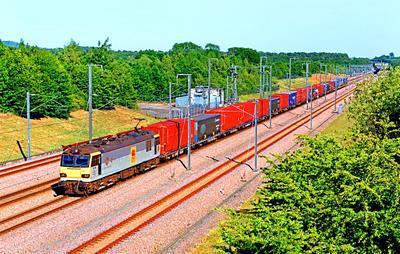 DB Cargo Class 92 puzzle, based on an original photo by Brian Stephenson (photo copyright Brian Stephenson -- used with permission). Photographed at Charing Heath, Kent, United Kingdom, June 25, 2020.