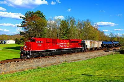 Canadian Pacific Railway SD70ACU puzzle, based on an original photo by John Sesonske (photo copyright John Sesonske -- used with permission). Photographed at Halfmoon, New York, May, 2020.