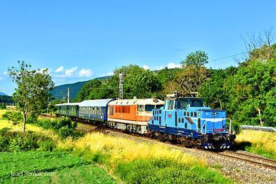 ZSSK Škoda 51 E1 puzzle, based on an original photo by Jozef Sarnák (photo copyright Jozef Sarnák -- used with permission). Photographed at Levice, Slovakia, June 25, 2021.