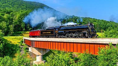 Reading & Northern 4-8-4 puzzle, based on an original photo by Dave Carney (photo copyright Dave Carney -- used with permission). Photographed at Jim Thorpe, Pennsylvania, June 22, 2024.