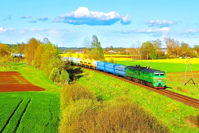 LDZ Latvian Railway 2TE10U puzzle, based on an original photo by Konstantin Davidov (photo copyright Konstantin Davidov -- used with permission). Photographed at Zilani, Latvia, May 12, 2020.