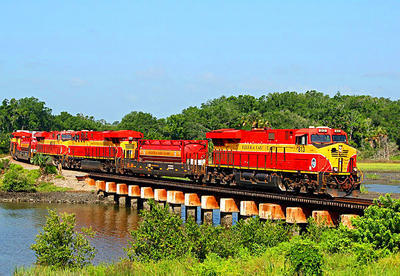 Florida East Coast Railroad (FEC) ES44C4 puzzle, based on an original photo by Bob Pickering (photo copyright Bob Pickering -- used with permission). Photographed at St Augustine, Florida, June 25, 2019.